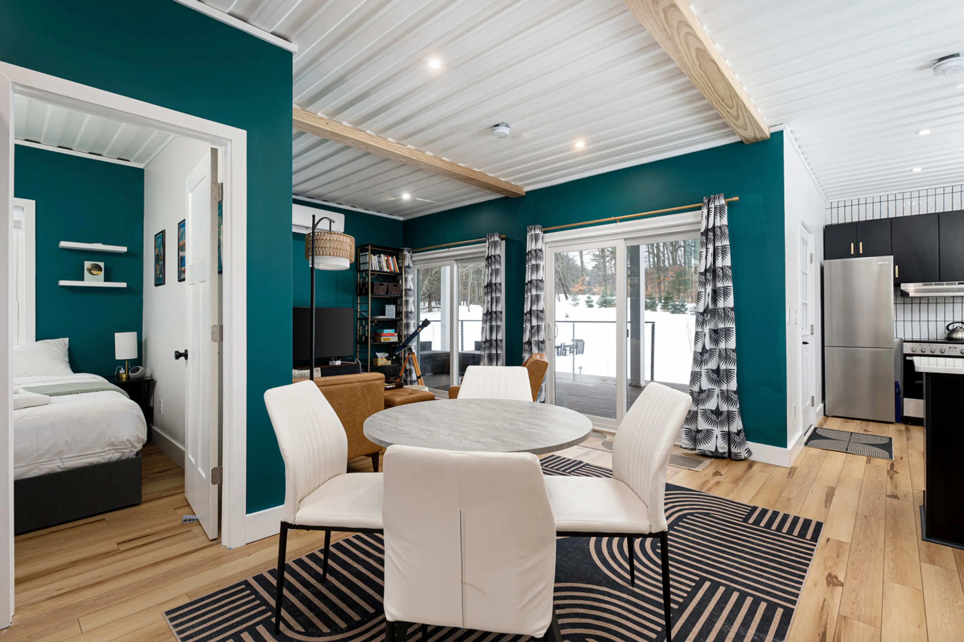 Cargo Cozy is a modern, cozy container retreat on 6 peaceful acres. Relax on the large deck with a hot tub and outdoor couch, dine outside on the patio, or gather by the fire pit under the stars. Inside, enjoy an open-concept space with a full kitchen, games, books, or a TV if you'd like to cuddle u...